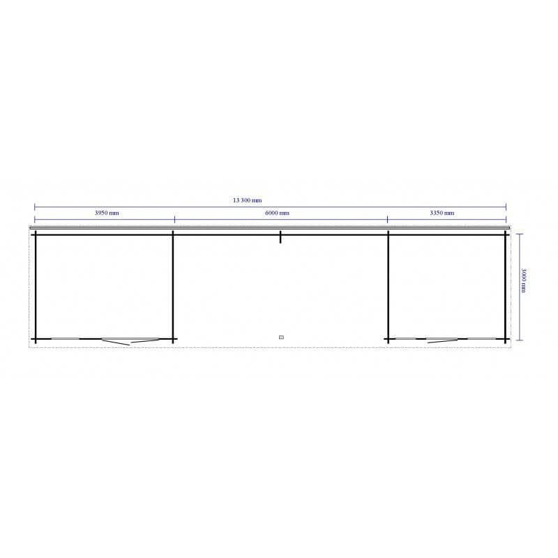 - 2 abris respectivement de largeur 395 cm profondeur de 242 cm et largeur 335 cm profondeur 300 cm soit total abris 19.61 m² et 1 auvent central de largeur 600 cm et profondeur de 300 cm, surface de 18 m²